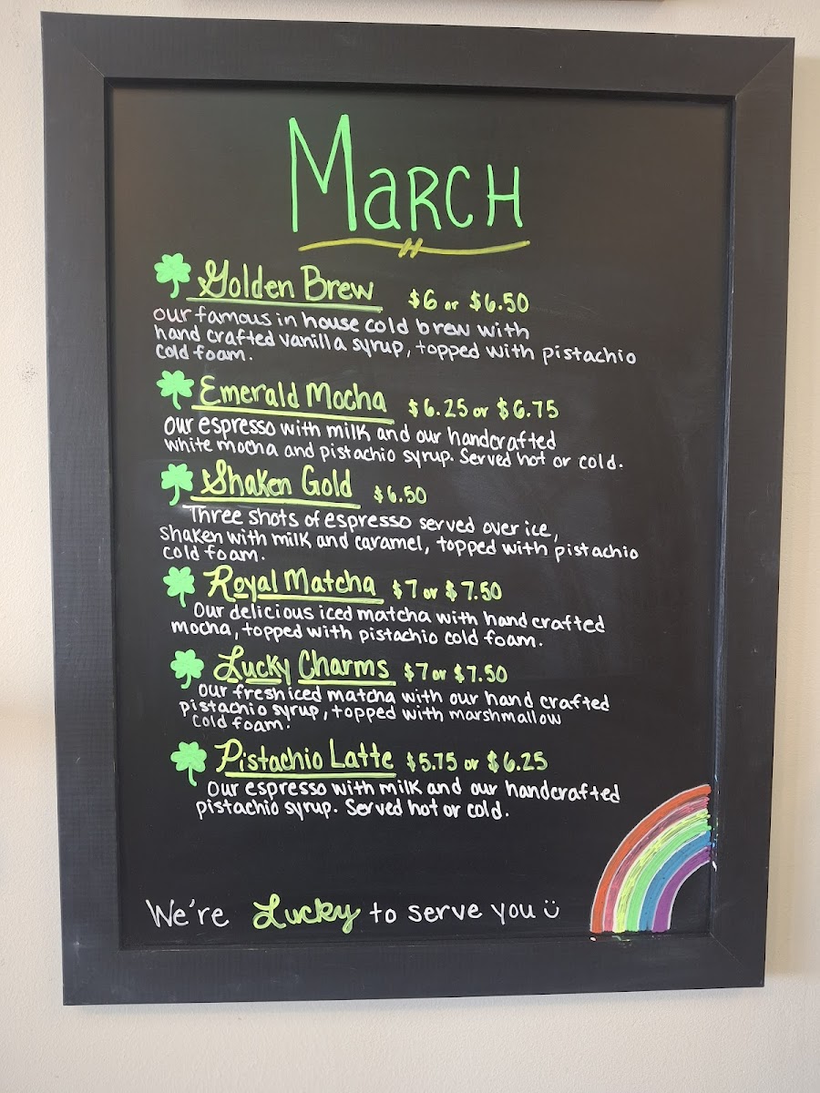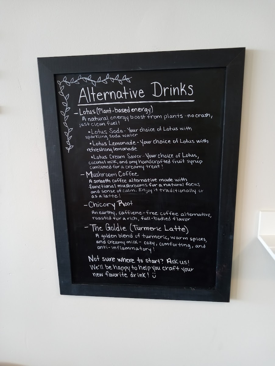 The menu also includes some intriguing specialty beverages. The Blueberry Velvet Brew and Velvet Dawn are great choices for those who enjoy rich, smooth flavors, while Midnight Bloom offers a unique, floral twist. For those looking for something with a matcha kick, the Matcha Lemonade and Golden Brew are excellent options, offering a balanced blend of flavors that are both refreshing and energizing.